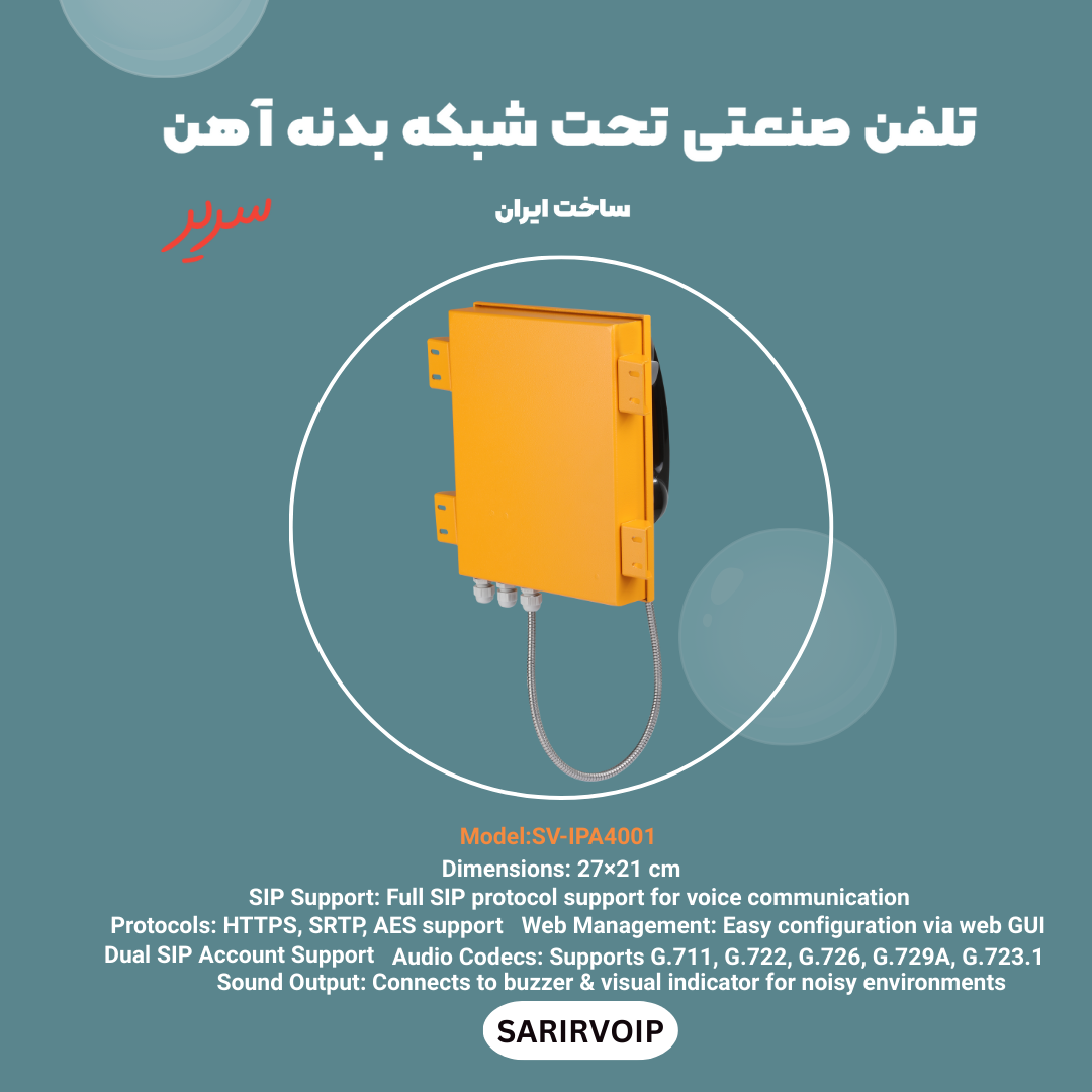 تلفن صنعتی تحت شبکه بدنه آهن یکی از بهترین گزینهها برای ارتباطات صوتی در محیطهای صنعتی و پروژههای بزرگ است. این تلفن با طراحی مقاوم در برابر شرایط سخت، IP65 و IP66، برای استفاده در کارخانهها، پالایشگاهها، تونلها و محیطهای پرخطر کاملاً مناسب است.