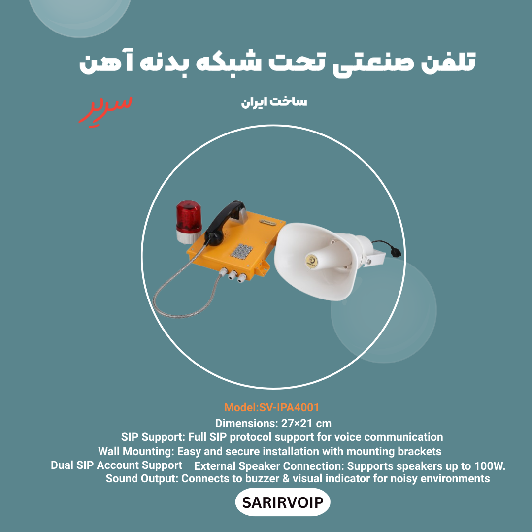 با داشتن آدرس IP ثابت، این تلفن بهطور پایدار و قابل اعتماد در محیطهای صنعتی کار میکند و به راحتی میتواند برای اعلام هشدارهای فوری یا پیامهای صوتی در فضاهای بزرگ و پر تردد استفاده شود.